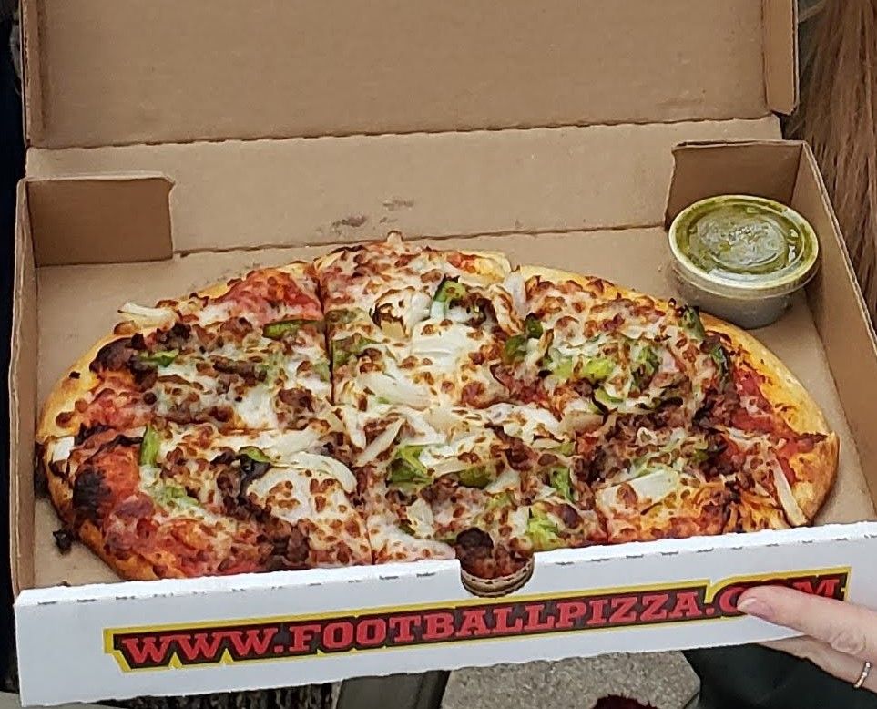 Pizzas shaped like a 2D american football, unlike all those other pizzas shaped like a 2D soccer ball. We taste test to discover whether there is more to this pizza than only a gimmick